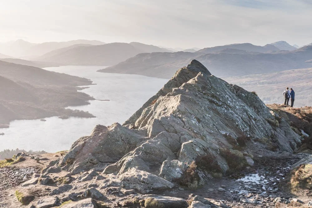 Ben A’an is one of The Trossachs’ most popular short hill climbs. The ascent is steep but manageable, and the rocky summit delivers expansive views over Loch Achray and the surrounding forested landscape, making it a rewarding half-day adventure.
